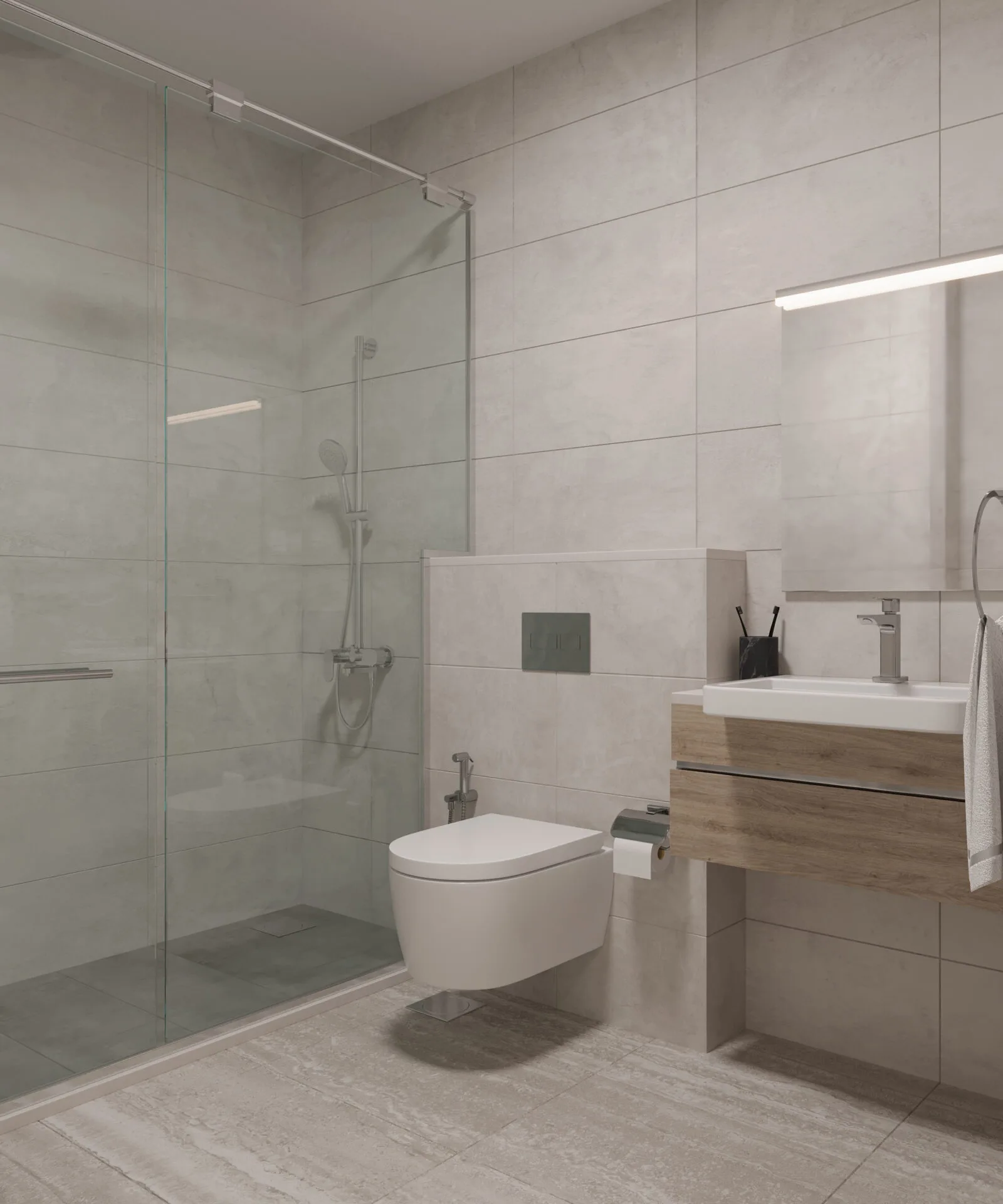 Available in over 10 layout types, our 1-bedroom apartments meet a wide range of needs. From open-concept spaces to units with guest bathrooms and private balconies, they blend modern comfort with sustainable living.